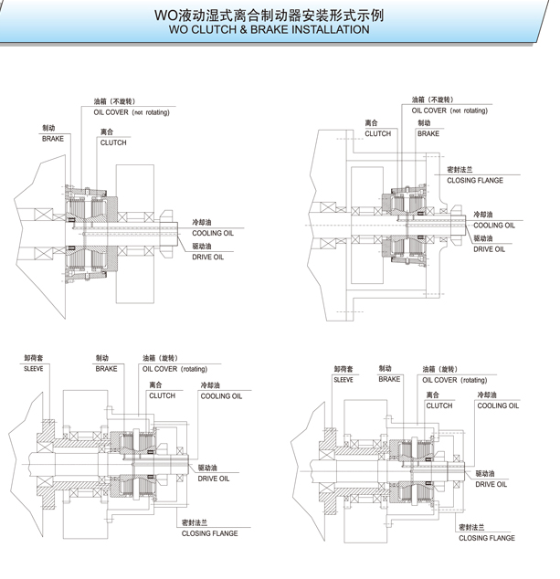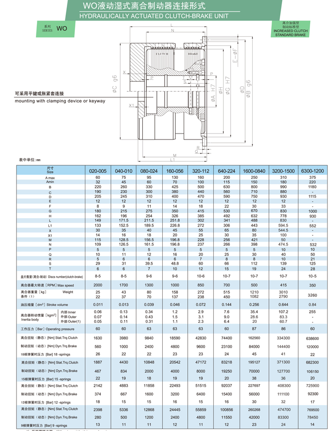 WO系列是一種組合式離合器 制動裝置,采用燒結青銅摩擦材料油驅動。它通常用于接合和制動任何工業機器(偏心壓力機、關節壓力機、金屬沖壓、封邊機、沖床、深沖壓力機、機械剪切機、熱鍛等)。它是要求高性能和最大可靠性的機器的理想產品。液壓離合器工作原理是通過軸和離合器輪轂的油壓使活塞脫開制動器摩擦盤,直到與離合器摩擦盤接觸,離合器嚙合。該系列配備了燒結圓盤,由于其巨大的散熱能力